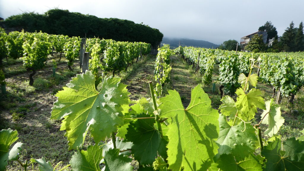 Disfrutamos de las variedades godello, albariño, treixadura, caiño y Loureira en blancos, y en tintos los mencía, brancelao, souson, cultivados en bancales desde la antigüedad. La bodega es un ejemplo de edificio que fue albergue en el siglo XII para peregrinos, ahora rehabilitado con una arquitectura de nuestro siglo y manteniendo la tradición gallega.