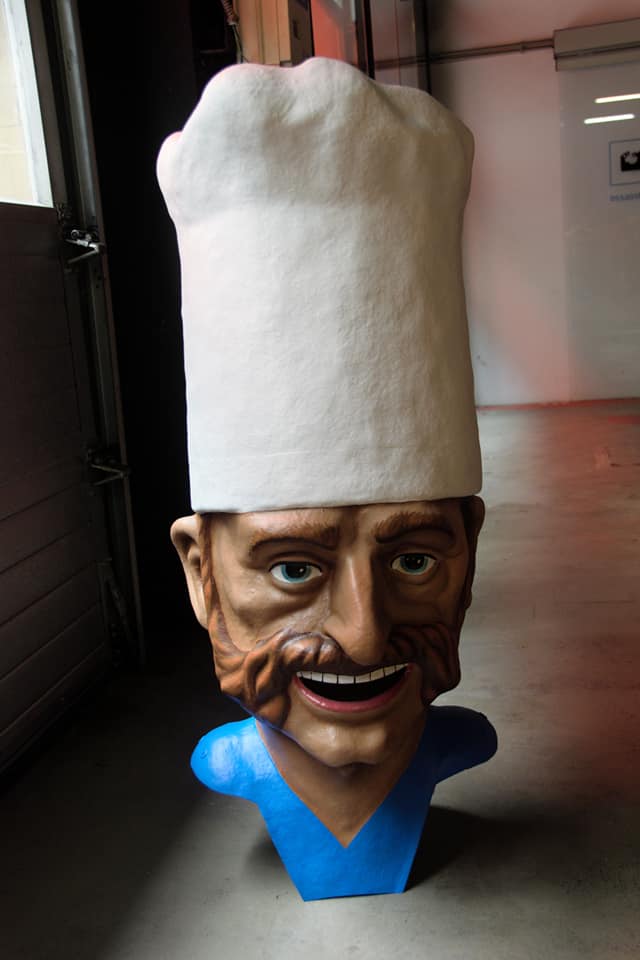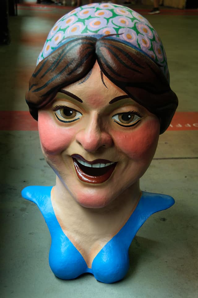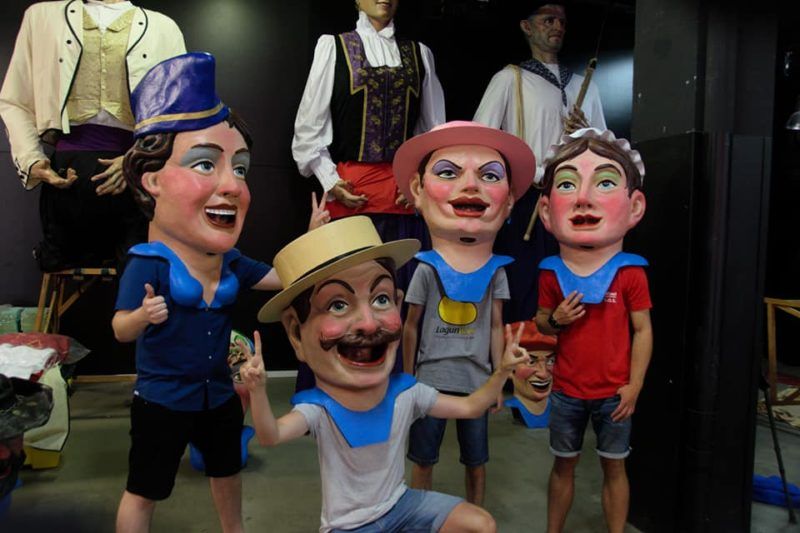 Los cabezudos fueron un trabajo de Aragonesas de Fiestas construidos en cartón piedra que dieron paso a otros de fibra de vidrio.