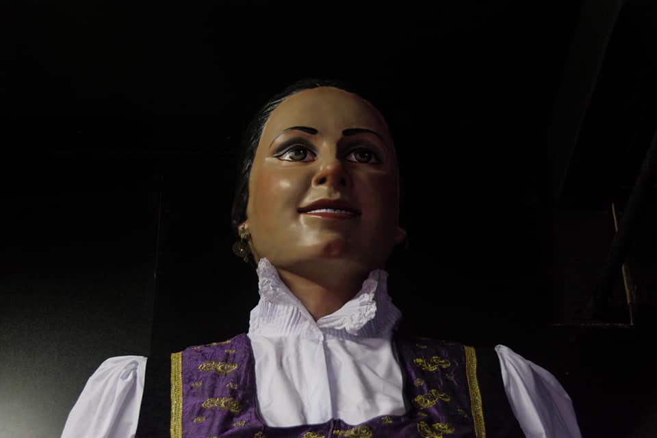 KARMELI : Batelera de San Juan con sombrero blanco y azul y un remo. Es el gigante de más peso con 67 kilos.