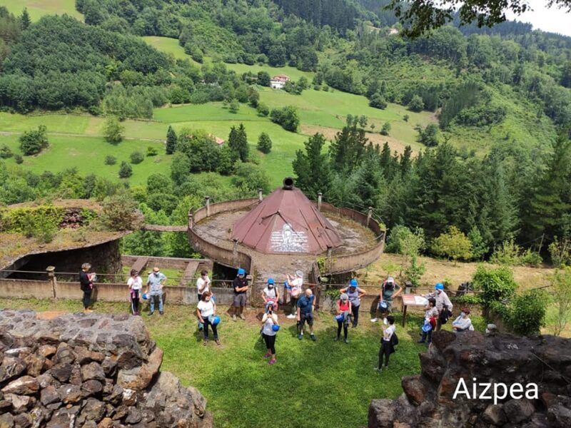 La visita continuaba en el gran complejo de las minas de Aizpea donde todavía parece escucharse el sonido de las vagonetas transportando el mineral de esta montaña del hierro. Estas minas incluidas en el Parque Natural de Aizkorri-Aratz comenzaron a explotarse en el siglo XI. Hornos de calcinación, vagonetas, raíles y las galerías que pudimos observar por dentro.