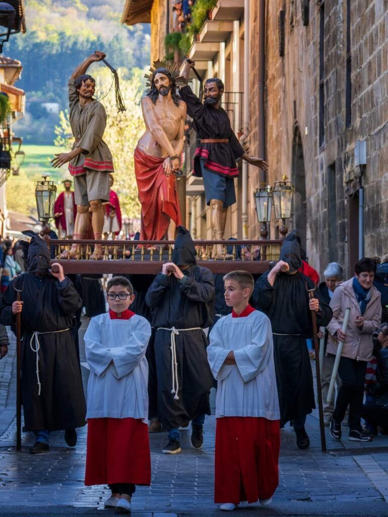 Semana Santa en Segura, de nuevo la mitología en el descenso de los Gentiles en Ataun, en Beasain veremos el Igartzako Dantzarien Eguna (Día de los danzantes de espadas), Feria del Queso en Idiazabal.