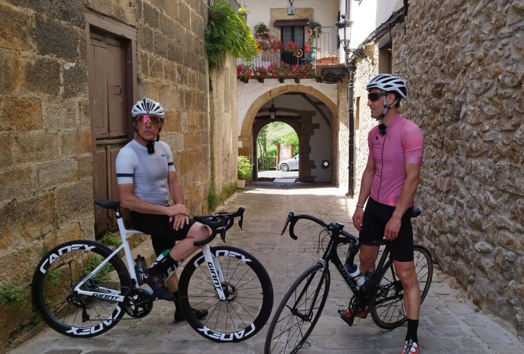 - Perico Delgado y Ion Ubide en su visita a Goierri, comentando la belleza de la localidad de Segura.