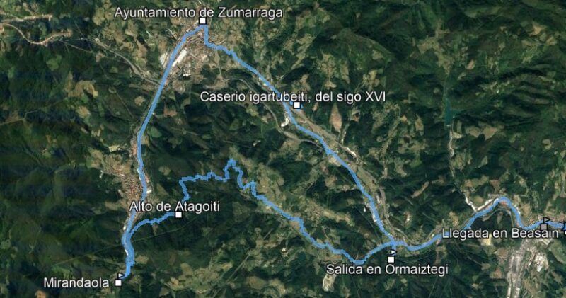 Toca cerrar el círculo y para ello utilizamos un puerto de los más bellos de Gipuzkoa, desde el Motxorro (enlace de Segura con Ormaiztegi), hasta el alto de Atagoiti, que toma el nombre del caserío de su puerto. Son 2,5 kms suaves (3,32 % de media) bajo frondoso bosque con muchos lazos que dan paso a un largo y gozoso descenso de 9,7 kms, de disfrute y contemplación de montes y especialmente de la sierra de Aralar hasta Ormaiztegi. En Ormaiztegi y nos detenemos para visitar la pequeña localidad y especialmente el viaducto del tren.