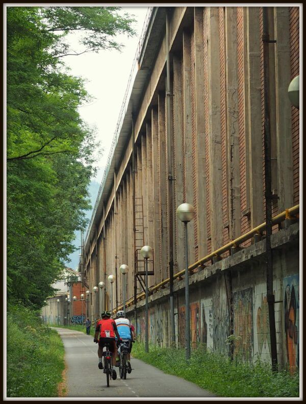 Con la bici completamos una rápida panorámica a esta importante localidad del Urola Garaia. Está estrechamente ligada a la industria del Hierro, y en su entorno tenemos restos de antiguas ferrerías, molinos presas, que nos acercan a las grandes fábricas siderometalúrgicas (Esteban Orbegozo, Patricio Echeverria… grandes y recordados emprendedores vascos) que llegan hasta las afueras de Legazpi y Urretxu y donde se conserva un impresionante patrimonio industrial que no deja indiferente a nadie y que atravesaremos pedaleando entre sus alargados pabellones.