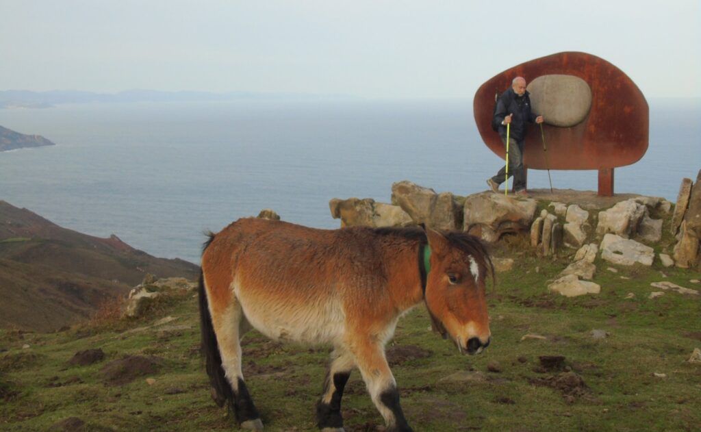 - La escultura «Atzein» (hermandad de los pueblos) de Remigio Mendiburu, frontera entre San Juan y Hondarribia. Foto: Carlos Bengoa.
