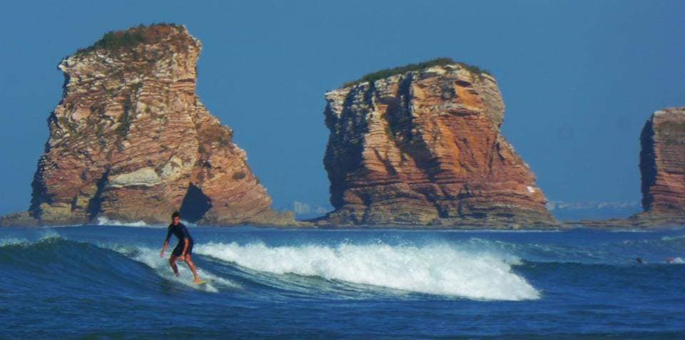Madrugo para ver el amanecer sobre las rocas gemelas y acierto de pleno, pues sale el sol entre las dos. Otro espectáculo natural con el sol dando brillo a la orilla sobre la que sigue dibujando el mar la silueta de los edificios del paseo. Hendaya cobró vida ya en el siglo XII al contar con un hospital para peregrinos del Camino de Santiago, mientras sus habitantes vivían de la pesca, de los astilleros y de la caza de ballenas, hasta que el turismo convertía Hendaya en una coqueta población con casitas de poca altura, tanto en su suave colina como en el paseo de la playa de Ondarraitz.