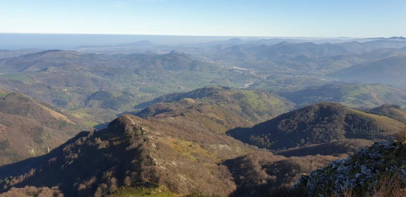 Frente a mí la costa, sus playas, sus acantilados, sus flysch, sus tesoros ocultos. A un lado, un poco más abajo el Parque de Pagoeta con sus flores y sus ferrerías. Al otro lado, el valle del Urola con el Santuario de San Ignacio de Loyola. Y por este otro lado, el del Oria con su Tolosa bulliciosa. Más al fondo las cumbres del Aitzkorri y las de Aralar. Y justo debajo otro valle más, el de Erregil, que me lleva del Urola hasta el Oria.
