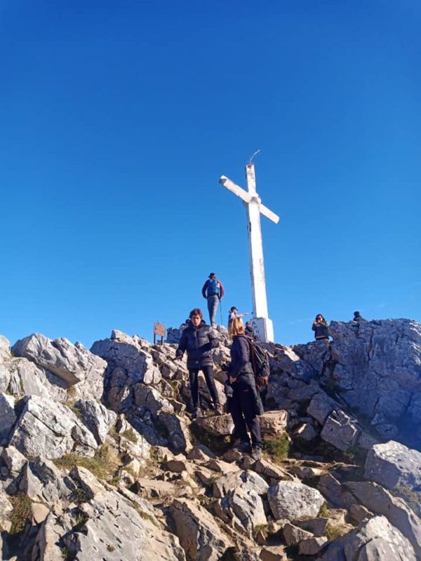 Y me cuenta el Hernio junto a su blanca cruz que ahora sigue recibiendo la visita amable de cientos de montañeros, de familias enteras, que suben hasta aquí de romería para cumplir sus tradiciones y rituales como el de cruzar los anillos que cuelgan de una cruz para curar el reuma. Como ve a sus gentes recolectar con esmero la manzana, tesoro de esta zona rural.
