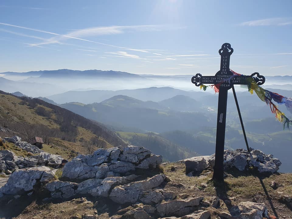 Frente a mí la costa, sus playas, sus acantilados, sus flysch, sus tesoros ocultos. A un lado, un poco más abajo el Parque de Pagoeta con sus flores y sus ferrerías. Al otro lado, el valle del Urola con el Santuario de San Ignacio de Loyola. Y por este otro lado, el del Oria con su Tolosa bulliciosa. Más al fondo las cumbres del Aitzkorri y las de Aralar. Y justo debajo otro valle más, el de Erregil, que me lleva del Urola hasta el Oria.