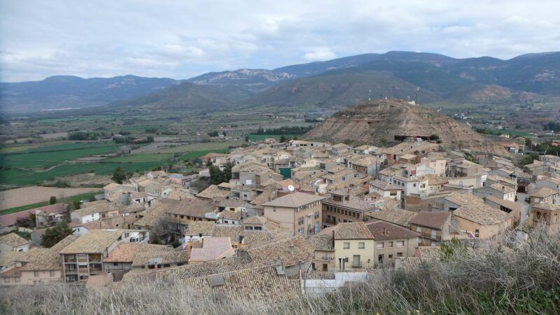 Un pueblo pequeño, pero compuesto por diez palacios alrededor de su iglesia, que fue muy destruida en la guerra civil española. Su fuente de 6 caños y bocas es hermosas y data de 1567. Con muchos manantiales en su seno, sus fuentes no dejan de manar agua continuamente. Se considera uno de los pueblos mas monumentales de Huesca a pesar de no tener mas que mil habitantes, que viven de la agricultura, cereales y olivos.