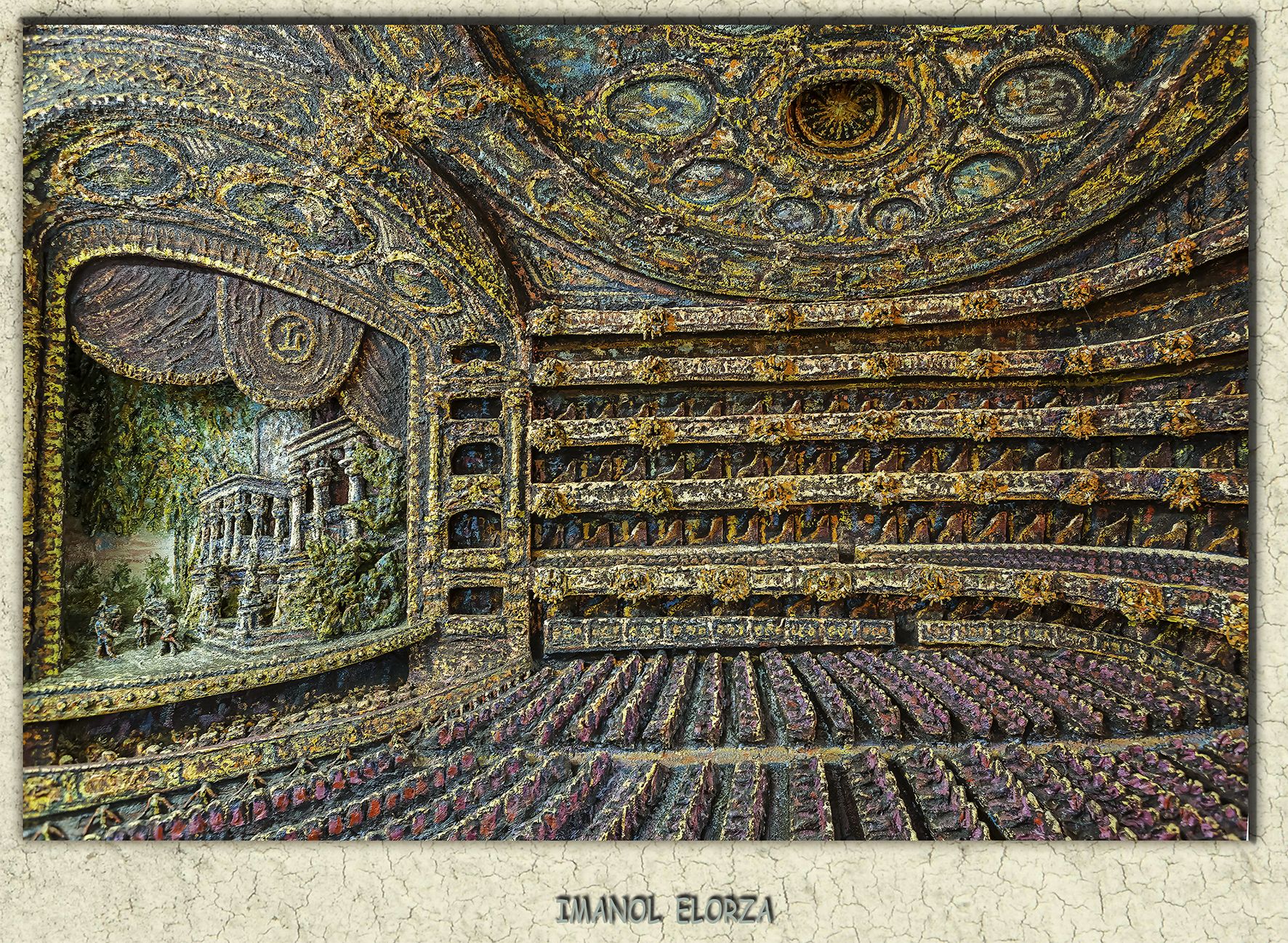 La obra del gran artista. Óleos relieves de gran tamaño ( hasta 2 metros de altura y 1,5 de ancho ). Incluye sonido, luces, agua…