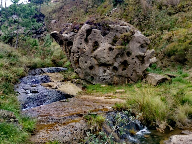 Enseguida cruzamos un arroyuelo con otra roca curiosa, una más en la montaña, para volver subir un fuerte repecho ya sobre la cala Azabaratza.