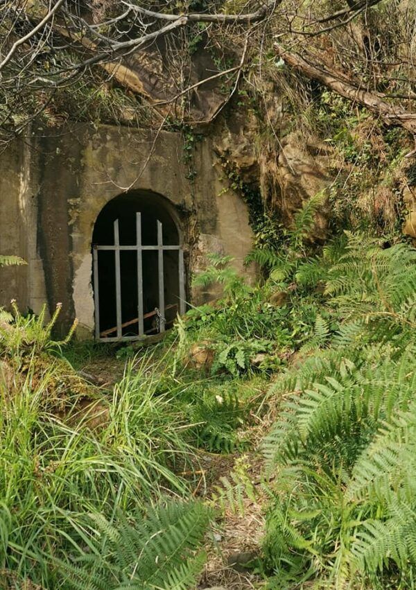 Con esta clara referencia, el excursionista bordeará la roca para encontrar las marcas blancas recién pintadas por el propio Jesus Mari Alquézar. Una senda muy inclinada nos lleva hasta el primero de los túneles de conducción de agua y cuya salida estaba en Pasai Donibane.