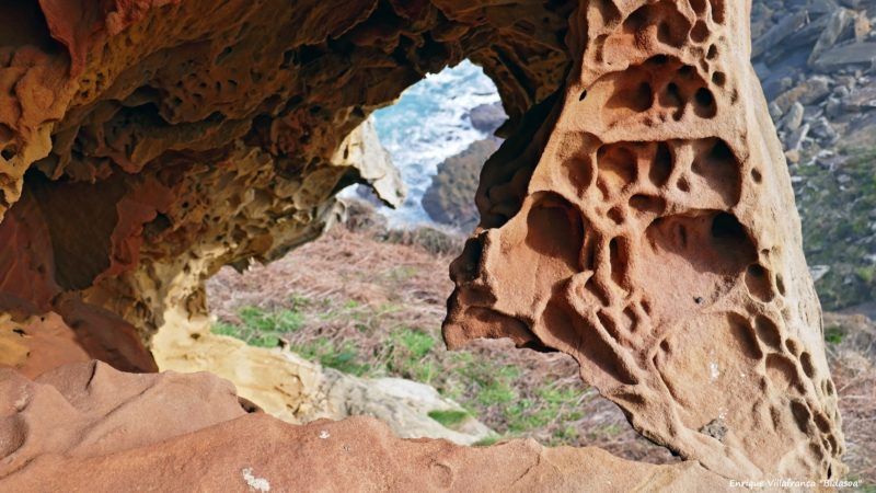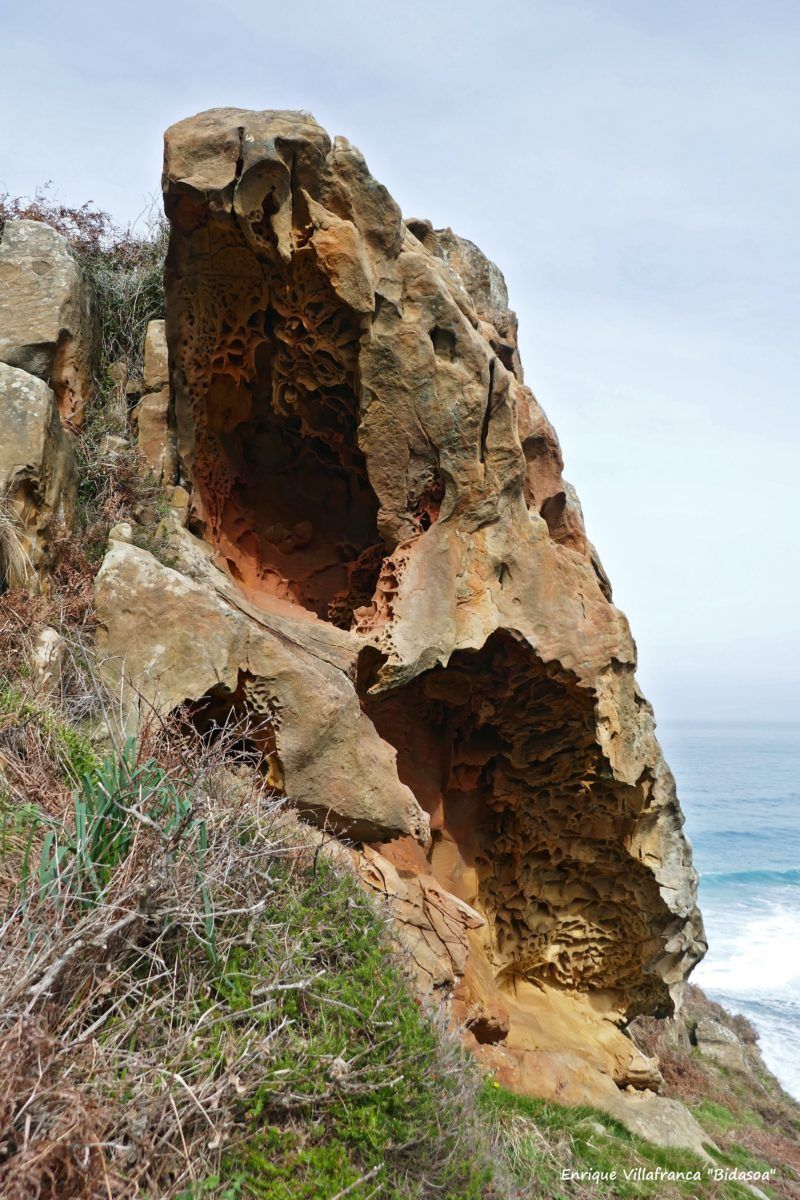 Todo el recorrido desde Pasai Donibane hasta el Cabo de Higer-Hondarribia es una geo ruta en un entorno privilegiado donde se fusionan paisaje, naturaleza e historia. Diferentes geo formas replegadas y emergidas desde el fondo marino durante la formación de los Pirineos surgen a lo largo del camino con formas curiosas y extravagantes que se desarrollan en sus cuevas y oquedades. Gracias a la composición de rocas areniscas y por el trabajo de erosión de millones de años, surgen todo tipo de formaciones morfológicas espectaculares con cavidades, cúpulas, agujeros, arcos, ventanas, y puentes de roca, con trazados comparables a hojaldres, cordales, alveolos, cortinajes, celdas, cuerdas entrelazadas, panales de abejas, encajes de bolillos, y dibujos eólicos con llamativos y diferentes colores de delicada finura.