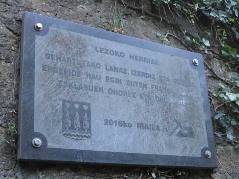 Iniciamos la excursión en Lezo para en los primeros metros recordar a los que construyeron esta hermosa vía ciclista, los represaliados o presos en el llamado por el régimen “batallón de trabajadores”, que tienen a la izquierda los restos de los barracones a pie de carretera con un panel recordatorio y enfrente una placa memorial.