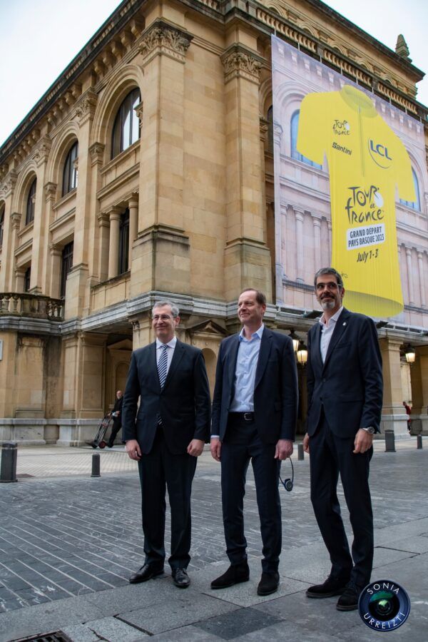 - Eneko Goia, Christian Prudhomme y Markel Olano, en la cuenta atrás de 100 días para la disputa de la segunda etapa.