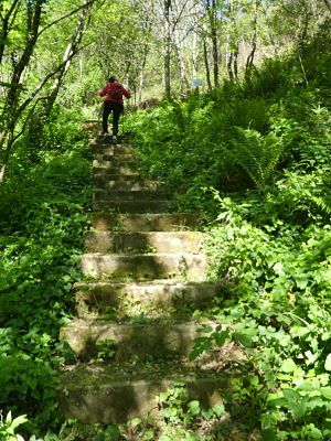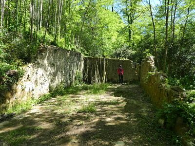Volvamos al depósito Iparraguirre. En nuestra progresión hacia la pista cruzaremos primero un sendero a la izquierda, y el segundo es la entrada a un escenario histórico de la represión franquista tras la guerra civil que es obligatorio visitar, a pesar de que por razones obvias no está indicado y es facultativo.