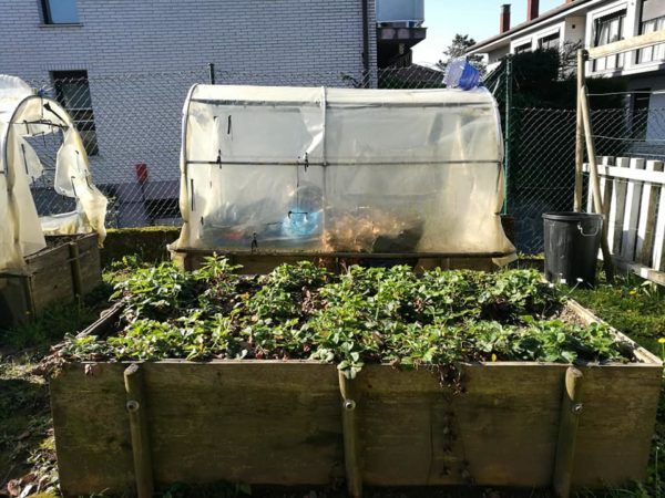 Jesuitinas cuida además su propio huerto en el que participan los alumnos en el cultivo de fresas por ejemplo o en ideas como un sencillo sistema de regadío aprovechando el agua de lluvia. Idearon también el vallado de madera.