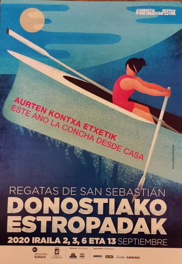 Una regata a puerta cerrada, una regata que como vemos en el cartel “ Salto “ de la burgalesa Eloisa Bielsa, reza… “ Este año, La Concha desde casa “ con la consiguiente pérdida económica que para la ciudad significan los cuatro días de regatas y que desde el Ayuntamiento no han sabido o no han querido valorar en cifras.