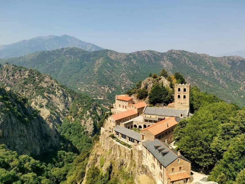 Queda fuera de la Cerdanya propiamente dicha, esta abadía de postal muy repetida en honor de San Martín de Tours. Está en lo alto de un promontorio rocoso a 1.055 metros de altitud y fue fundada por Wilfredo II de Cerdaña en al año 997.