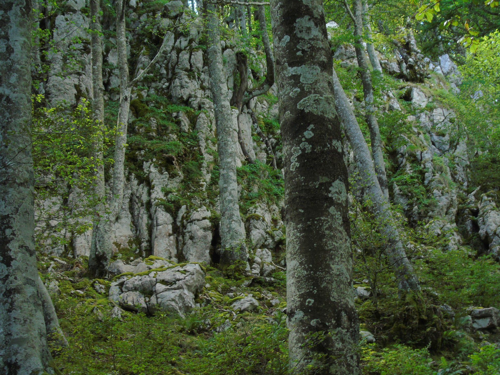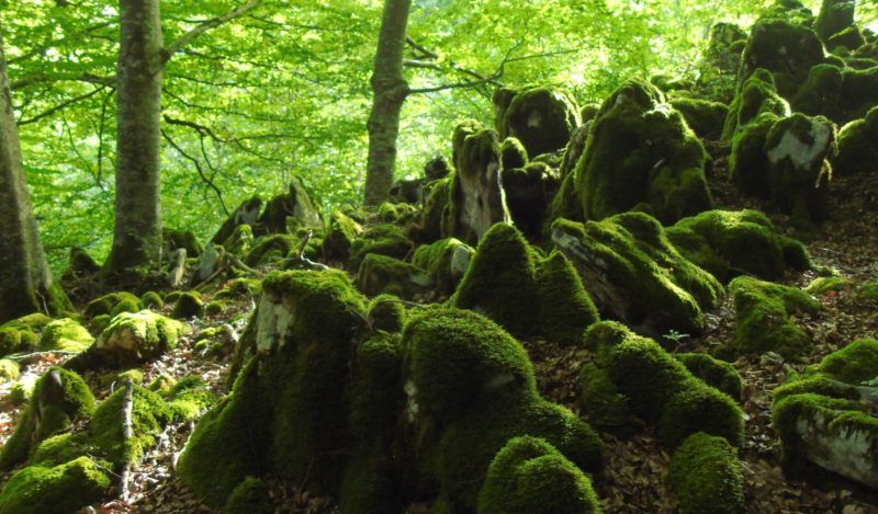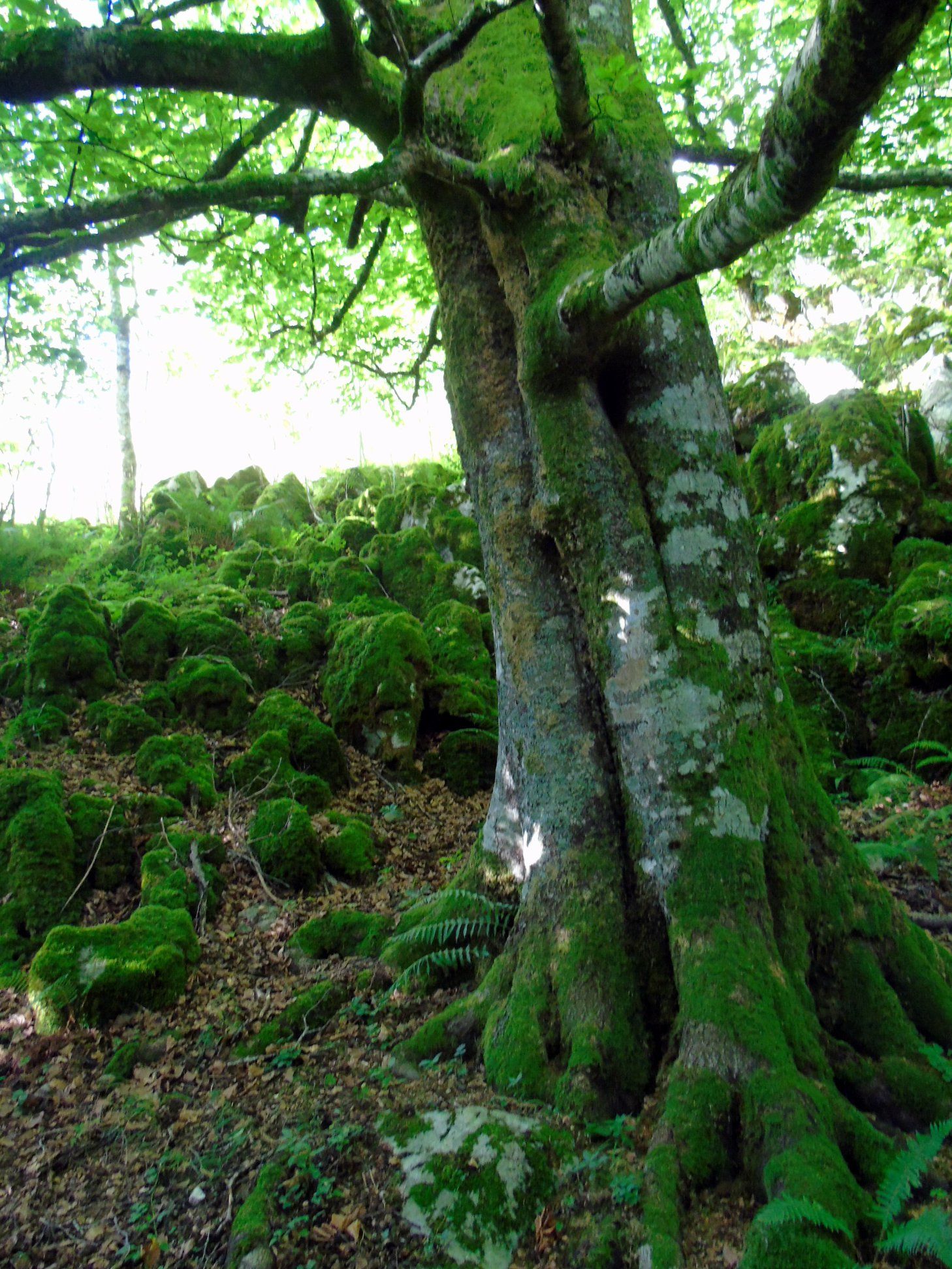 Desde Lizarrusti junto a su albergue, oficina de información de Aralar y parque de recreo, salía el empinado sendero que nos empezó a mostrar ese paisaje kárstico tan característico de Aralar. Surgencias calcáreas se mezclaban con el bosque cubiertas de musgo. Por momentos, rincones de enorme belleza, muy cerca de la salida, que invitan a cualquiera a pasar un buen rato de relajación.