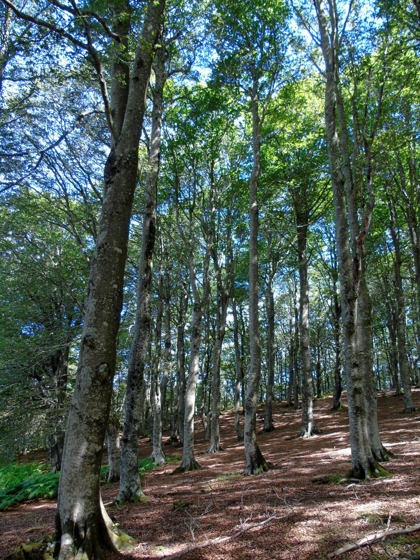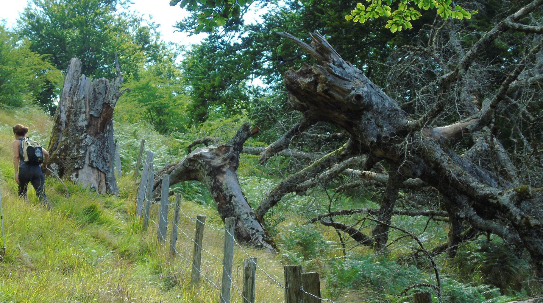 Siguiendo las marcas del GR por Iraioko Zelaia ( 890 metros de altitud ), rodeando el Alleko ( 1019 ) hasta Kalelantegi. Pese a la dureza de la subida disfrutamos de las formas de árboles, caídos, de la altura de las hayas y de un paisaje que de cuando en cuando se nos abría a los ojos.