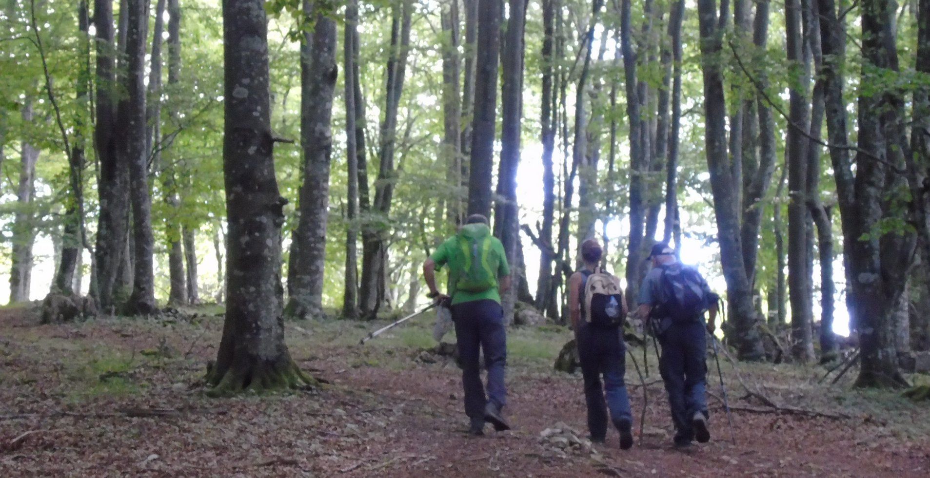Pero eso será para otra ocasión. Hubo que regresar a paso ligero, algo sencillo en el grupo de acompañantes, hasta bajar por el hayedo y sin senda alguna a una pista que cogimos hacia la izquierda y que nos llevó a la carretera que desde Etxarri Aranaz sube a Lizarrusti. Un breve tramo de 1000 metros de carretera nos dejó en el restaurante donde obviamente, se repusieron las fuerzas.