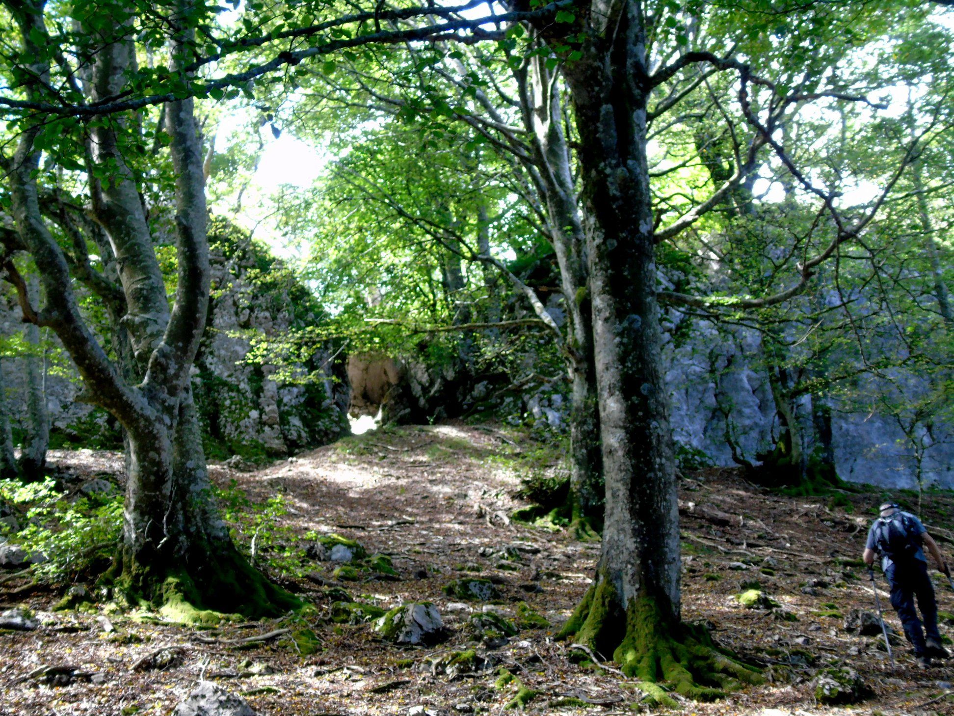 Como punto de arranque, el puerto de Lizarrusti a 622 metros de altitud una vez dejado atrás el pueblo de Ataun, ejemplo de respeto a la mitología vasca. Como destino, la Cueva de la Dama en la base de las blancas paredes calizas que coronan la cima de Putterri a 1299 metros de altitud y a través de un extenso hayedo que también nos mostró un buen número de Gentiles y hasta de Herensuges, que haberlos haylos.