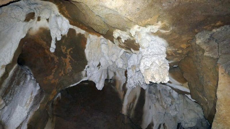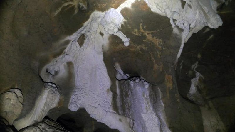 En el vídeo adjunto vemos bien la entrada y su interior. Tras saludar a varios excursionistas que salían, entramos en la espectacular cavidad con mucho cuidado por lo resbaladizo. Varias salas enormes nos mostraban sus tesoros, curiosas formaciones de burbujeantes estalactitas , grandes globos que parecían explotar en cualquier momento.