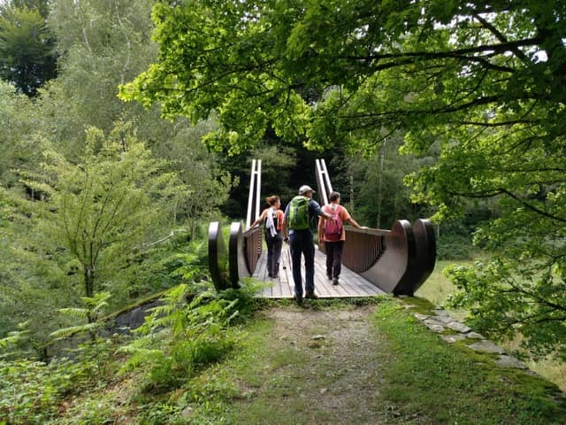 Tocaba bajar hasta Lareo y esta vez por la otra orilla llegar hasta el curioso puente finlandés, extraño en estos entornos en cuya cercanía se observan los restos de un dolmen.