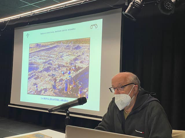 Con gran asistencia de personal, más de la treintena en cada grupo y 24 por videoconferencia (todo un récord), hoy le tocaba el turno a Xabier Peñalver, doctor en arqueología, antropólogo, e investigador de Aranzadi que ha dirigido y participado en numerosas excavaciones en Gipuzkoa, Euskadi, a nivel nacional e internacional.