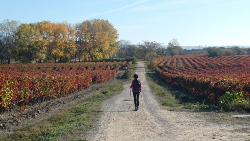 El otoño es la mejor época para disfrutar de paseos entre las viñas de Laguardia, Elciego y El Villar, con los paisajes coloristas de las viñas, cuando se visten con sus mejores galas.
