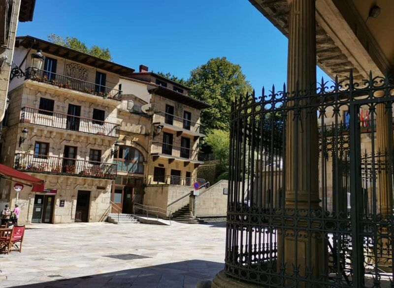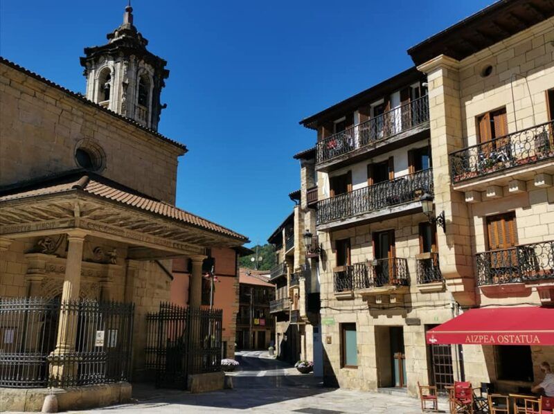 En su bonita y tranquila plaza de la que salen las tres calles principales ( Nagusia, Zubitxo y Donibane ) destacan tres edificios. La Iglesia de San Juan Bautista, del siglo XV, sobre una mínima altura que forma el propio monte, con la Basílica del Santo Cristo y el Ayuntamiento.