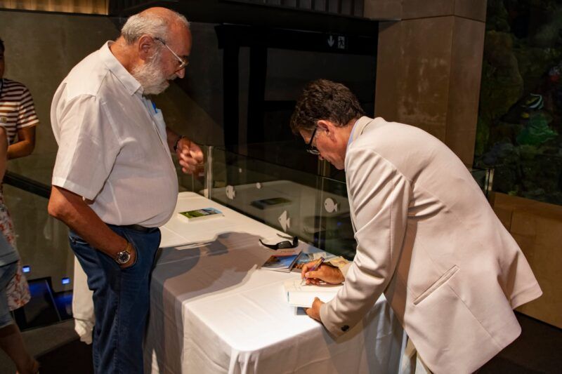 Dio la bienvenida a los presentes que casi llenaron el Auditorio pese a ser julio, el Presidente del Aquarium José Ignacio Espel, que destacó la importancia futura de este libro que también hace hincapié en el respeto a nuestra naturaleza empezando por el propio mar.