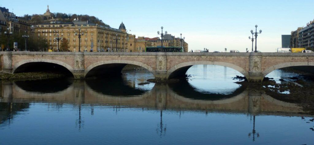 Fue el primero que se construyó en la ciudad y en el siglo XIV, en su inicio de madera, y ha sido destruido y construido en numerosas ocasiones. El de piedra data de 1872. Destacan sus farolas, diseñadas por Juan Alday que se mantienen desde el año 1926. Conecta el centro con el barrio de Gros.