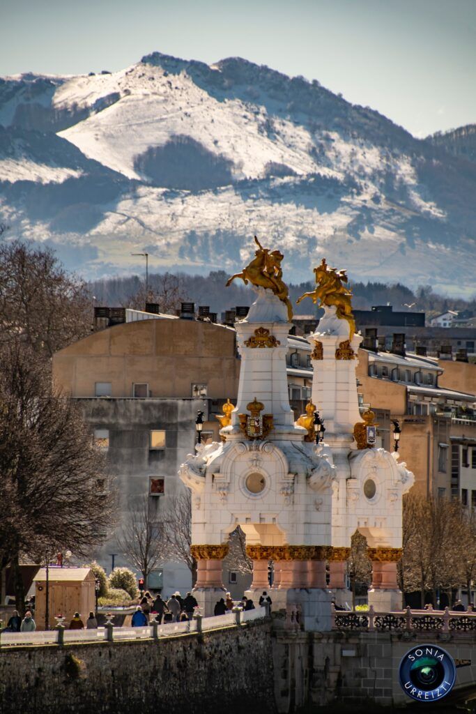 De construcción ecléctica destacan los cuatro obeliscos monumentales, recientemente arreglados, que con 18 metros de altura están coronados con figuras ecuestres sobre los obeliscos. Realizados por el escultor Ángel García Díaz es, sin duda, el más elegante de los puentes del Urumea a lo que se añaden los tres escudos policromados para formar un conjunto de cita obligada. Está inspirado en el puente Alejandro III de París.