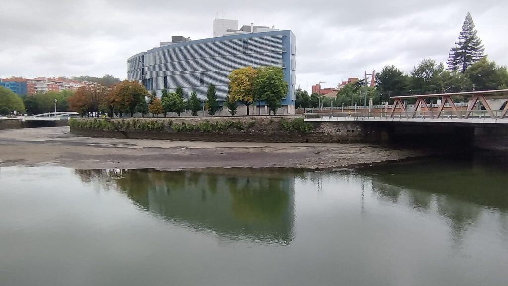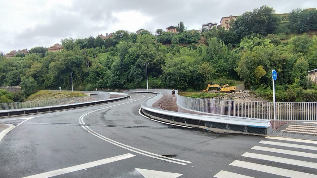 Todo el recorrido puede hacerse por carril bici, bidegorri, aunque a fin de parar en cada puente cambiamos varias veces de margen del río por paseos peatonales en algún caso cerrado por las obras del nuevo tren, y que tuvimos que bordear.