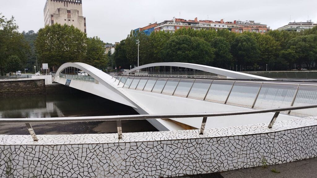 El quinto puente desde la desembocadura y hacia el nacedero. Precioso puente de arcos simétricos de 80 metros de longitud, suspendido por péndolas de acero. Ubicado a la altura del singular edificio del hotel Amara Plaza que lo une con el paseo Federico García Lorca. Destacan también las aceras con 45.000 baldosas de colores y forma hexagonal y 10 cms. con diseño del artista Manu Muniategiandikoetxea. Merece la visita.