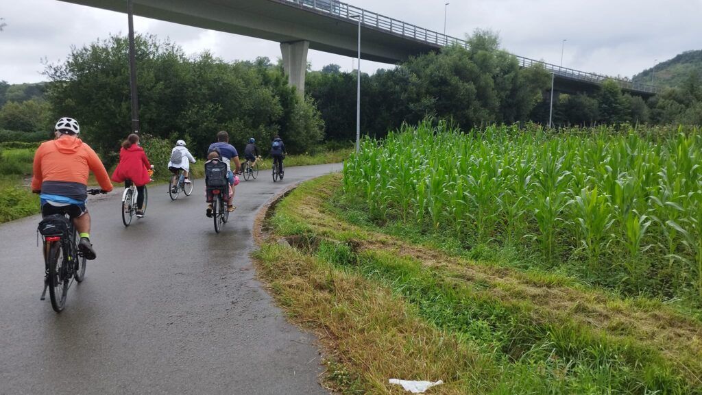 Dicho lo cual, nueve esforzados de la ruta superaron el inicio lluvioso del último domingo de julio, con alguna ausencia notable de dudosa excusa. La marcha fue amena, relajada, sin formar abanicos, ni acelerar en repechos, tarea que queda para los Pogacar o Evenepoel. Eso sí, echamos en falta algo de catering en Hernani, un poquito de queso, una sidrita, y mira que pasamos por sidrerías entre Hernani y Astigarraga, situación que hubiera solventado algún ausente. Otra vez será.