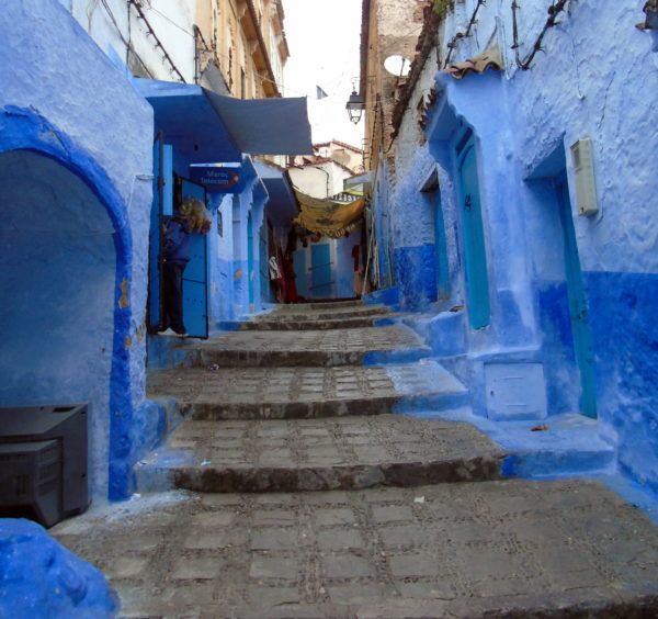 Y de ahí a la montaña donde se abre un pueblo amable de color azul. No hay palabras para describir tanta belleza. Calles estrechas, escalinatas, puertas, ventanas, casas… todo está pintado de azul. Los vendedores no insisten en una prueba de educación infinita por lo que se agradece su tranquilidad. Pocas veces callejear sin descanso ha sido algo más agradable, viendo detalles en azul, calles limpias con artesanos trabajando…