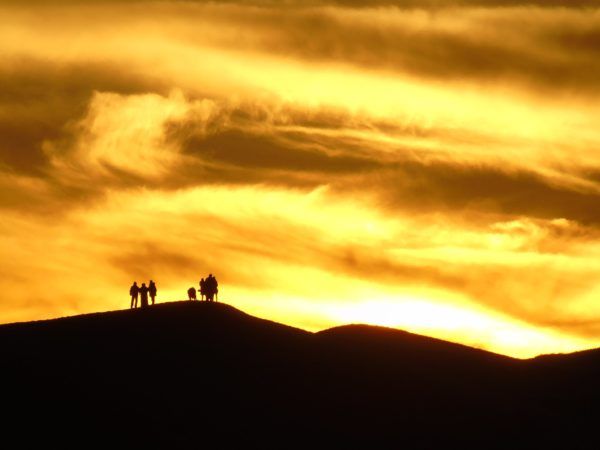 En una de las dunas vimos el último rayo de sol del 2018 y hubo que madrugar para ver la salida del sol en el 2019 con la silueta de cientos de turistas como vemos en la cuarta foto del artículo. Un espectáculo único. A medida que ganaba el sol, las dunas volvían a jugar a las luces y a las sombras con la silueta de la Gran Duna de 150 metros, al fondo. Mereció la pena un notable esfuerzo para alcanzar la cumbre y ver un paisaje de llanuras de palmeras, toda la arena del desierto y muy lejos , tanto al Este como al Oeste, una cadena de montañas de cumbres planas muy parecidas, la del Atlas por un lado y la frontera con Argelia por otro.