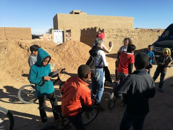 Ahora viven en casitas de adobe donde las mujeres tejen ropas de colores, con su escuelita y su taller de danzas. Allí aparecieron decenas de niños que recibieron llenos de felicidad, libros de dinosaurios, de hadas, de estrellas, juguetes, caramelos. Rachid y Janira eran felices jugando a las cosquillas. Y luego llegaron Ahmed y Asmé que reían a carcajadas. Un momento que no se podrá olvidar.