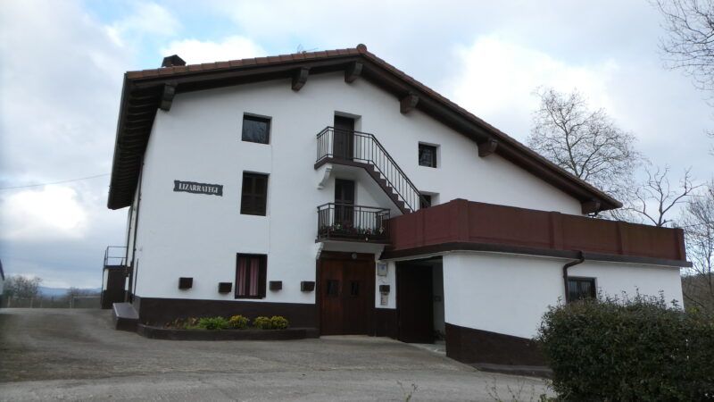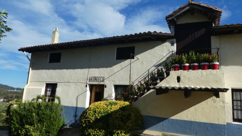 Y aquí, señalizado a la izquierda nace una carretera “Petritegi bidea” en suave ascenso que llega hasta la inmenso conjunto de “Petritegi sagardotegia”, la más grande de la zona, con su viejo caserío, y las nuevas instalaciones con tres salas comedor, museo al aire libre y tienda. El monte Antondegi queda a su izquierda, y sobre Gartziategi/ Lizeaga.