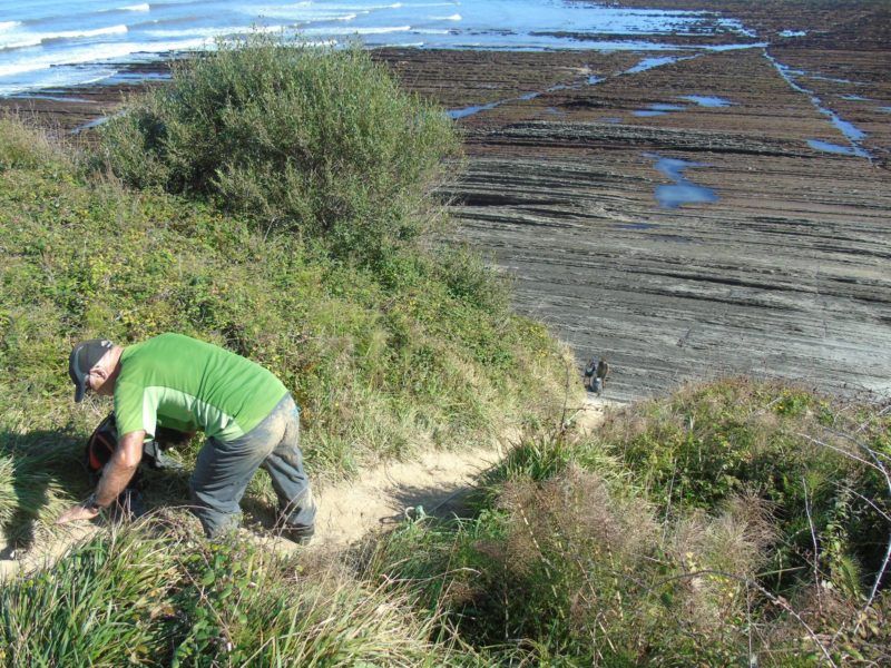 La rasa mareal es imponente pero para llegar a Sakoneta tendré que rodear el enorme acantilado andando entre las piedras donde encontraré decenas de icnofósiles. Toda esta zona es el más claro libro de Geología del mundo pues en pocos metros se observan todas las eras de la tierra.