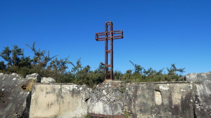 Sin embargo en la cima se conservan testigos históricos, las ruinas de un fuerte, la cruz esquelética de los caídos del bando “nacional” en la guerra civil, un buzón al lado del índice geodésico, una placa conmemorativa de Montañeros de Antiguo y otros testigos como escaleras de accesos, bancos de descanso y una grabación en una pared que puede ser el escudo de España.