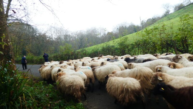 Tras un km, se toma la alternativa de la izquierda para descender por el caserio Murgil – 44 -, en un escenario bucólico de bosquetes y verdes prados con rebaños pastando, de una insospechada belleza, la campiña en su máximo esplendor, hasta Igara, donde tienen parada varias líneas de DSSbus, o bien hasta la cercana Avenida de Tolosa.