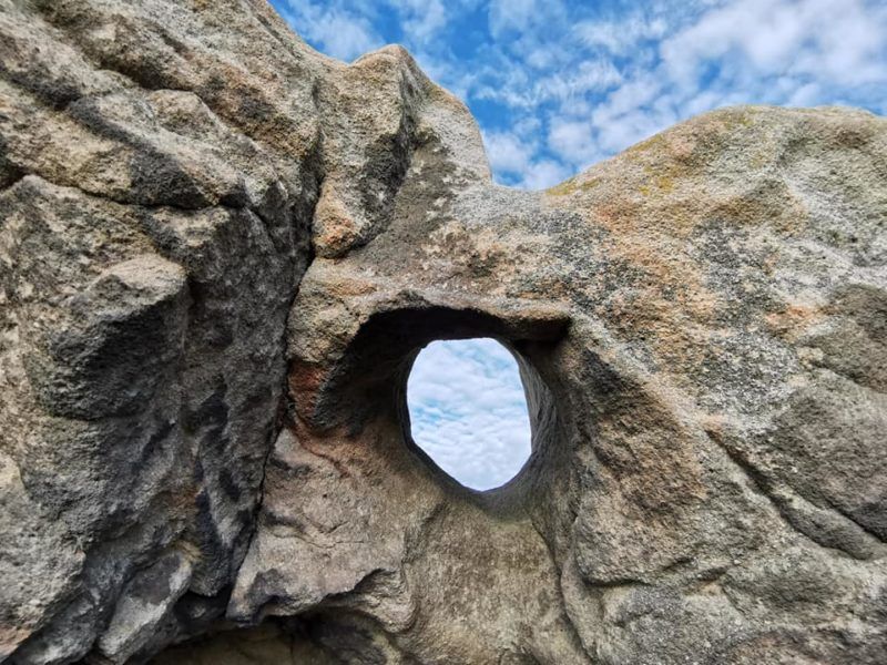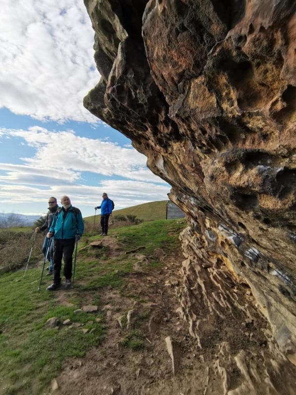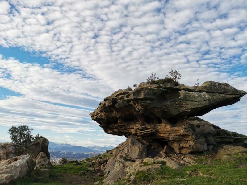 Una vez pasada la dificultad el camino llano y cada vez más herboso nos deja en la base de la montaña redondeada de Mitxintxola mientras observamos alguna roca erosionada muy llamativa.