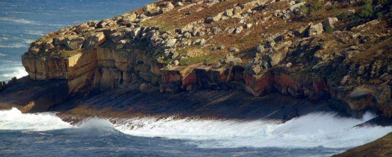 Vemos ahora los restos del Buenos Aires siguiendo el camino hacia el Norte y que nos dejó bordeando la base de Mitxintxola en un gran mirador hacia los acantilados de Jaizkibel y del Faro de la Plata, dominando Ulia, el monte hermano.