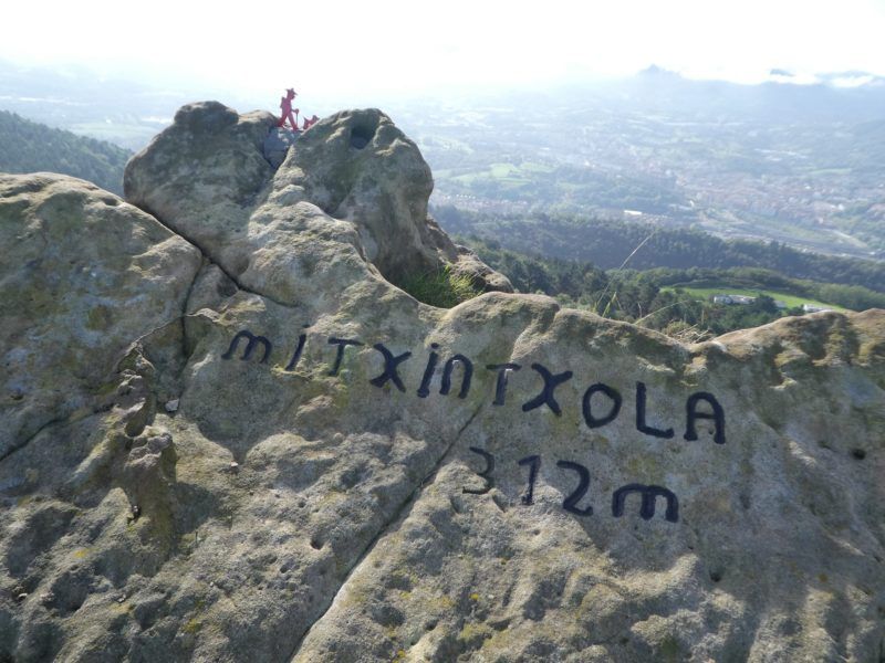 Sin embargo, en la parte occidental, un tanto olvidada se encuentra una modesta cima, Mitxintxola, natural, redonda, despejada y amable de verdes pastizales y diferentes y originales rocas con geoformas en su atalaya que merece la visita, y especialmente porque es el mirador más excepcional de la sierra, hacia todos los rumbos, y se la considera como vigilante de la costa.