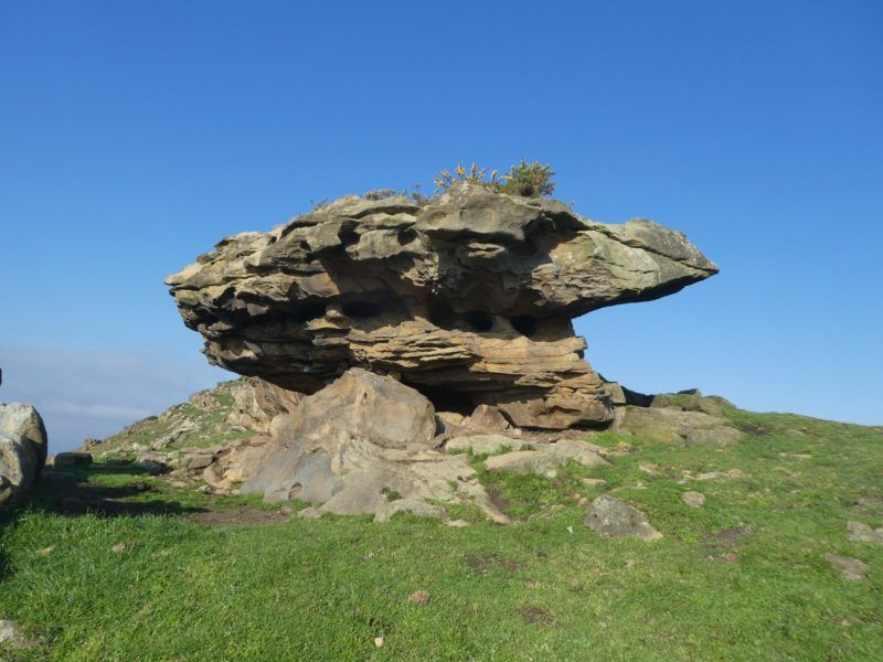 La cima es un balcón que no tiene buzón, tiene un mojón recuerdo y una inscripción del nombre para indicar la cota superior, de donde brotan diferentes geoformas, algunas de ellas relevantes (un ojo) y especialmente la conocida como “Sukaldea”, una formación con cavidad y visera, que es la gemela de la catalogada “Zapelarri”. El nombre proviene porque en su baja cubierta los mariscadores y pescadores de la zona cocinaban para su degustación en este refugio las lapas, pescados de roca y percebes que recogían en la cercana costa.